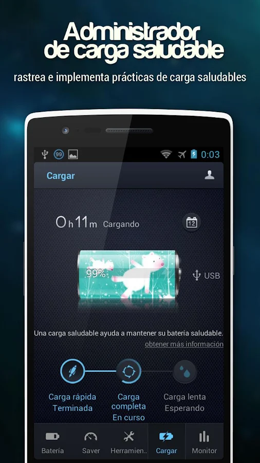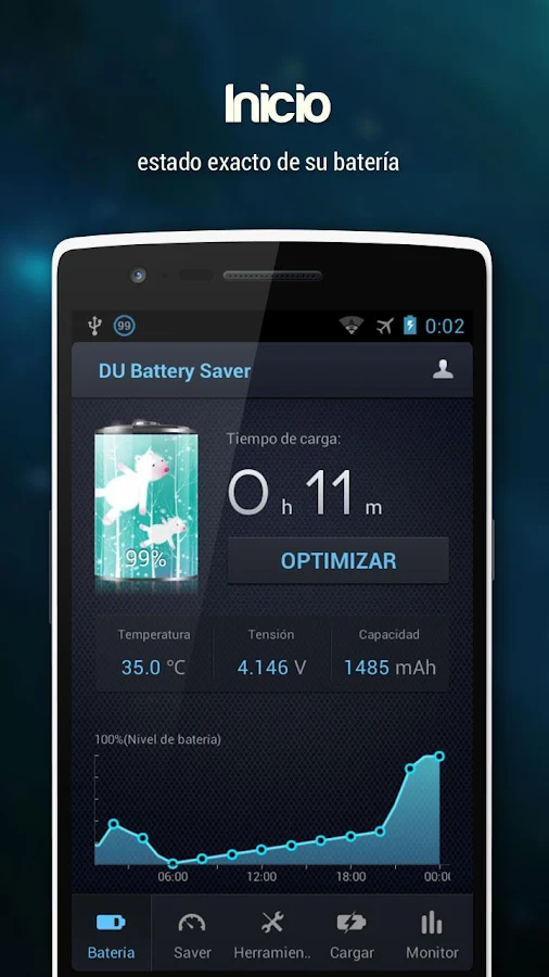 DU Battery Saver, el administrador y doctor de energía y batería líder para Android, con funciones PRO es una aplicación aún más potente que extiende la duración de la batería de su teléfono incluso más. Obtiene hasta un 70 % más de tiempo de uso con su teléfono o tablet Android. Resuelve los problemas con la batería de su teléfono o tablet Android y extiende su vida útil con los modos de administración de energía inteligentes preestablecidos de DU Battery Saver, sus funciones de carga saludable y sus controles que requieren un solo toque.