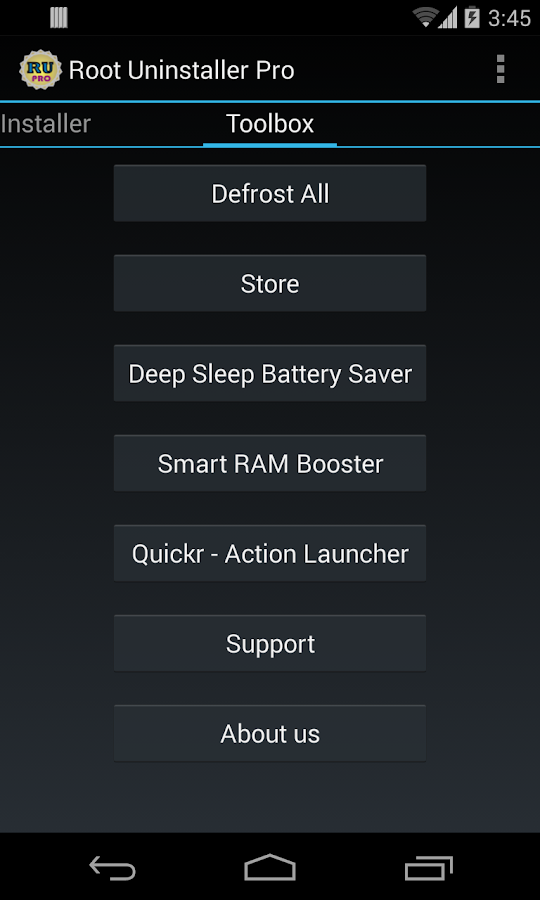 Esta aplicación se puede desinstalar o congelar aplicaciones preinstaladas en el teléfono y mucho más. Desinstalador muy rápida y sencilla herramienta en solo clic para desinstalar el sistema y las aplicaciones regulares.