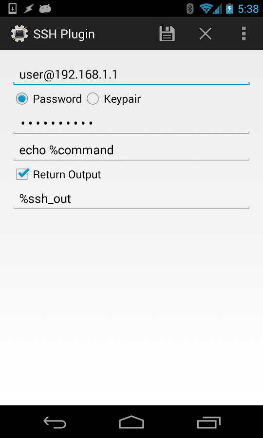 SSH Tasker es un plugin para Locale / Tasker que le permite iniciar sesión automáticamente en un servidor a través de SSH y ejecutar comandos remotos.