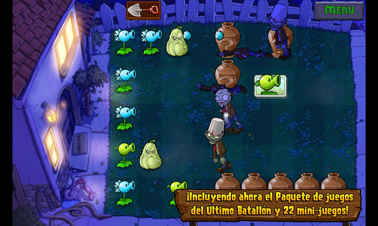 Plants vs. Zombies™ es uno de los mejores juegos de acción y estrategia. Los zombis tienen habilidades muy especiales, así que piensa rápido y planta más rápido aún para definir una estrategia eficaz y vencerlos a todos. Eso sí, ten cuidado al utilizar tus semillas y plantas, porque son limitadas; además, en tu batalla contra los muertos vivientes tendrás que lidiar con obstáculos como el anochecer, la niebla o una piscina.
